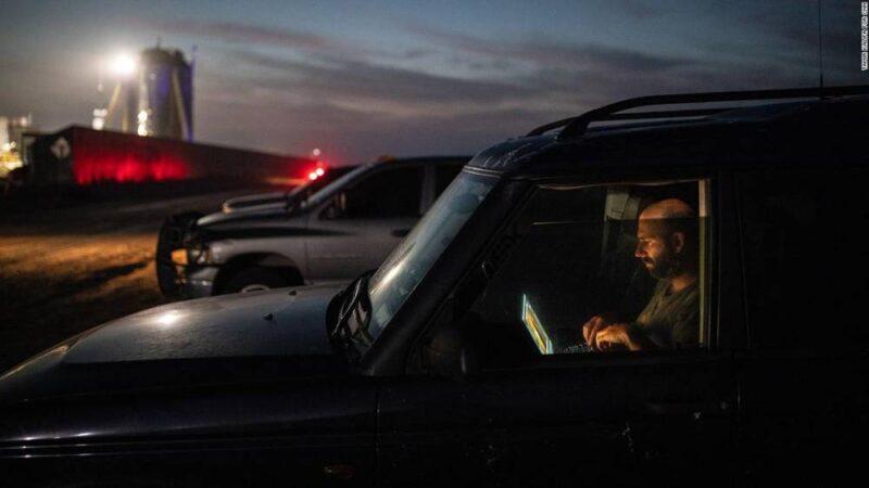 Jack Beyer edits photographs in his vehicle near the SpaceX launch site.”It’s not a full-time job in terms of…I don’t get a salary or anything. I don’t get like health benefits, right? That’s normal,” he said. But lately he’s been working 40 to 80 hours a week on SpaceX-related content, and his online profile has grown to the point where he has a steady stream of donations and monthly income from Patreon, which allows fans to donate directly to their favorite online creators.”It’s an insane amount of hours, but I will work my fingers to the bone. I don’t care,” he said. As a lifelong space fanatic, Beyer said, he would rather be in a dusty Texas town watching rocket prototypes explode than anywhere else on the planet. NASASpaceflight is prolific. The team, which has about 10 contributors, is known to spend up to nine hours hosting livestreams as they await test flights. One NASASpaceflight stream of SN11 rolling down the street toward the launch pad, for example, got 1.5 million views in two months.The contributors to NASASpaceflight aren’t the only ones doing this. Tim Dodd, who uses the moniker Everyday Astronaut, has amassed nearly 1 million subscribers on his YouTube channel. He began streaming the launches SpaceX conducts out of Florida and producing educational videos in which he delves into the physics of and design choices made for modern rockets.