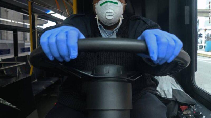 A bus driver for the Detroit city bus line DDOT poses for a portrait wearing a protective mask and gloves for protection in Detroit on March 24, 2020, during the novel coronavirus outbreak.