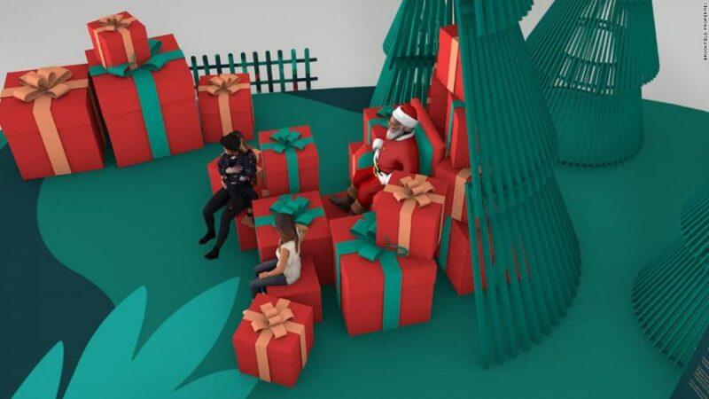 Rendering of a Santa set at a mall where children will maintain 6 feet distance during their visit.In some of its malls where Santa will make an appearance beginning November 20, he’ll meet and greet with families while appearing to sit inside a giant snow globe. In other locations, Santa will be behind a giant picture frame.”Think of this like a drive-up window type of scenario,” said Viniard. “Guests will be able to walk up and have their conversation with Santa and then turn for the framed photo.” CVS and other stores want to help you safely trick-or-treatFor anyone who wants to skip a trip to the mall, Viniard said Brookfield is also launching a virtual visit with Santa experience, which kicks off on Nov. 1. Reservations can be made through the website ExperienceJingleRing.com.Simon Properties, the largest mall operator in the US, said Santa will also be coming to its malls this year but declined to offer any details.