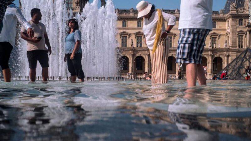 People sunbathe and cool off at the Trocadero Fountains next to the Eiffel Tower in Paris.But in cities like London, many swimming pools couldn’t cope with the volume of people — resulting in long lines with hours-long waits, while others had to shutter completely.Still, there are some signs that countries are getting better at handling heat waves, even without air conditioning.After a 2003 European heat wave killed a staggering 14,000 in France alone, authorities devised a plan to avoid such a loss of life again. Paris implemented a special heat plan, designed to give its inhabitants relief. The city set up public cooling rooms in municipal buildings, put mist showers in the streets and kept parks and swimming pools open longer than usual.