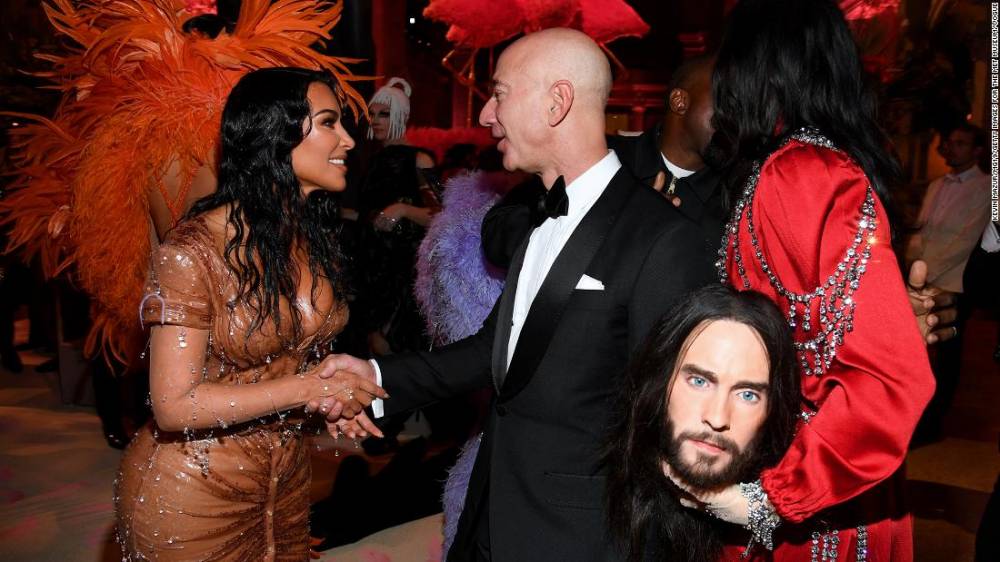 Photos: Amazon founder Jeff Bezos Bezos shakes hands with Kim Kardashian West while attending the Met Gala in New York in 2019. Actor Jared Leto is on the right.Hide Caption 23 of 31