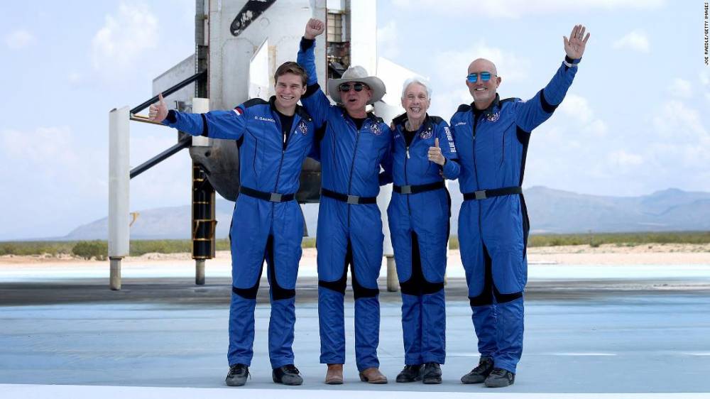 Photos: Amazon founder Jeff Bezos From left, Oliver Daemen, Bezos, Wally Funk and Bezos’ brother Jeff pose for a picture after flying into space in July 2021. The trip marked the first-ever crewed flight of Blue Origin’s suborbital space tourism rocket, New Shepard.Hide Caption 31 of 31