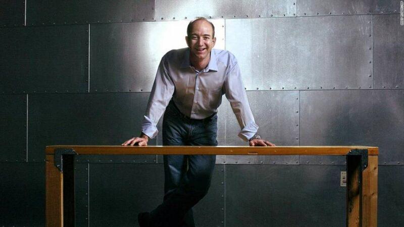 Photos: Amazon founder Jeff Bezos Jeff Bezos stands with one of Amazon’s trademark door-desks at the company’s Seattle headquarters in 2004.Hide Caption 9 of 31