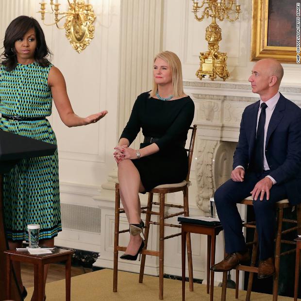 Photos: Amazon founder Jeff Bezos Bezos listens to first lady Michelle Obama at a White House event in 2016. The event announced commitments from more than 50 companies to hire and train veterans and military spouses. Bezos announced a commitment by Amazon to hire 25,000 more military veterans in the next five years.Hide Caption 18 of 31