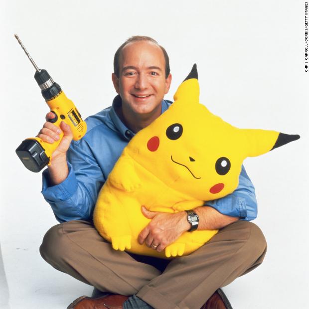 Photos: Amazon founder Jeff Bezos Bezos holds a power drill and a stuffed Pikachu in 1999. By this point, Amazon had started to sell items other than books.Hide Caption 4 of 31