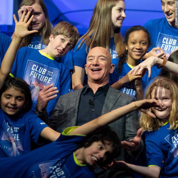 Photos: Amazon founder Jeff Bezos Bezos is joined by the children from the Blue Origin Club for the Future in 2019. At the event in Washington, DC, Bezos unveiled a Blue Origin prototype of a lunar lander.Hide Caption 24 of 31