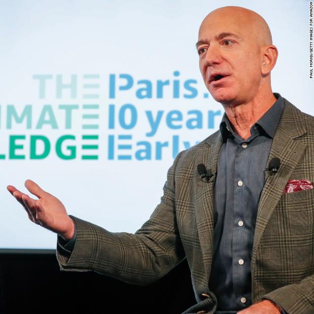 Photos: Amazon founder Jeff Bezos Bezos announces the co-founding of The Climate Pledge in 2019. Bezos’ broad plan to fight climate change includes meeting the Paris climate agreement 10 years early. That would make the company carbon-neutral by 2040. Bezos also announced that Amazon would purchase 100,000 electric vans.Hide Caption 26 of 31