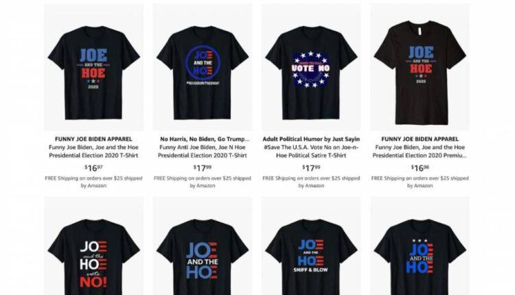 Twitter users on Tuesday started pointing attention to shirts with various versions of the phrase “Joe and the Ho,” referring to the Democratic nominees for President and Vice President, former Vice President Biden and US Senator Harris.Several such shirts were still listed on the site Wednesday morning, but links to the products are no longer active. As of around 12:30 p.m. ET on Wednesday, an Amazon (AMZN) spokesperson said the products had all been removed for violating selling guidelines.