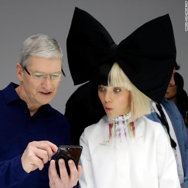 Photos: Apple CEO Tim CookCook shows an iPhone 7 to performer Maddie Ziegler during an event to announce new products in San Francisco on September 7, 2016.Hide Caption 13 of 28