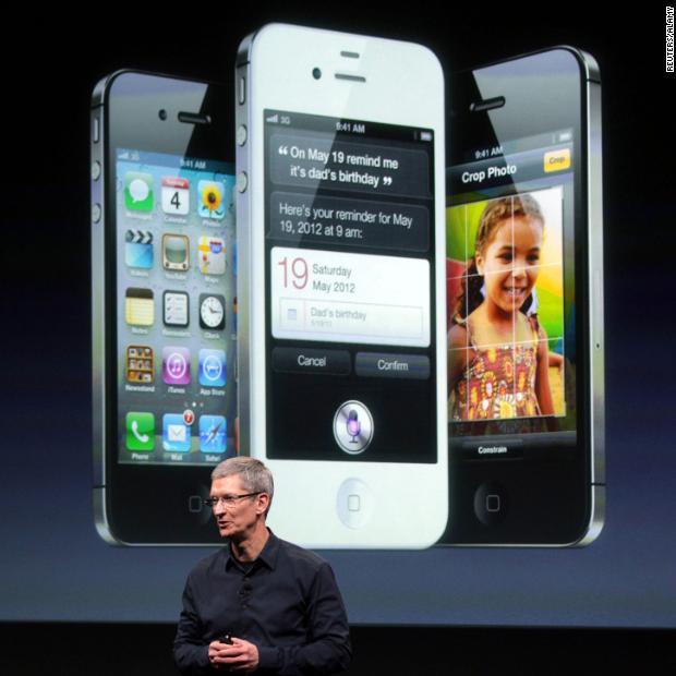Photos: Apple CEO Tim CookCook speaks in front of an image of an iPhone 4S at Apple headquarters on October 4, 2011. Hide Caption 3 of 28
