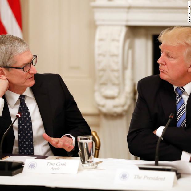 Photos: Apple CEO Tim CookPresident Donald Trump listens as Cook speaks during an American Technology Council roundtable in the State Dinning Room of the White House on June 19, 2017.Hide Caption 19 of 28