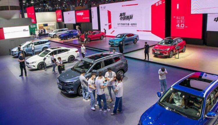 People visit the Geely booth during a car show in Guangzhou, China on November 23, 2020.Carmakers are increasingly open to collaboration with rivals and tech companies as they begin seriously to confront the huge challenge of ditching the internal combustion engine to tackle the climate crisis. The investment required to develop electric cars has helped spark a wave of partnerships, with companies teaming up to spread the costs.