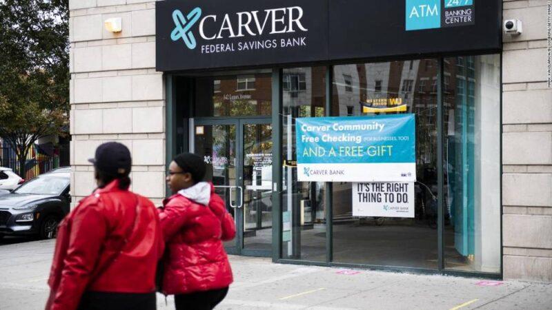 Pedestrians walk past a Carver Federal Savings Bank branch in the Harlem neighborhood of New York, U.S., on Oct. 27, 2020.