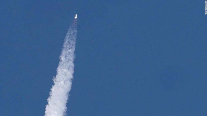 The launch was visible to reporters on the ground, with the rocket streaking across the almost cloudless Texas sky with a blooming contrail. The bright blaze of the rocket engine looked almost like a star or planet as it rose into the sky. Bezos and crew could be heard on Blue Origin’s livestream cheering as they moved about the capsule during the microgravity portion of the flight.Read More”It’s dark up here, oh my word!” Funk could be heard saying.