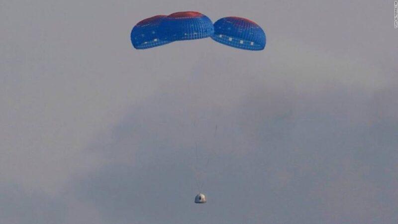 Photos: Jeff Bezos' historic flight to spaceThe New Shepard capsule parachutes safely back to Earth.Hide Caption 3 of 9