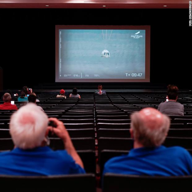 Photos: Jeff Bezos' historic flight to spaceThe capsule’s descent is seen during a watch party in Van Horn, Texas.Hide Caption 4 of 9