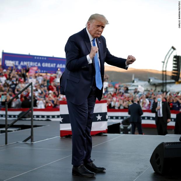 Photos: A tale of two campaignsTrump dances to the music at the end of a campaign rally in Carson City, Nevada, on October 18.Hide Caption 45 of 98