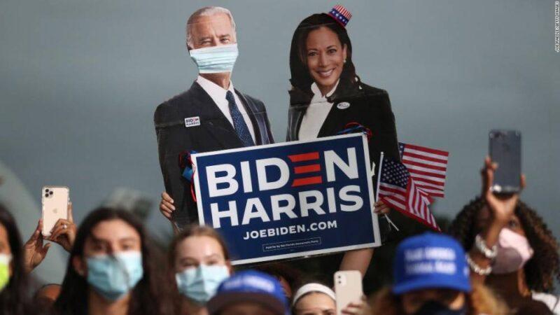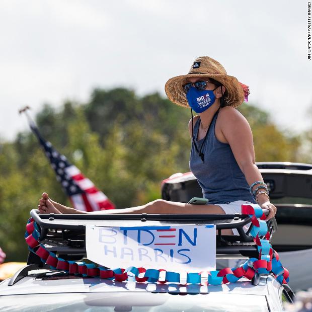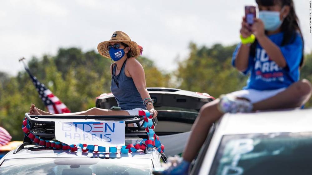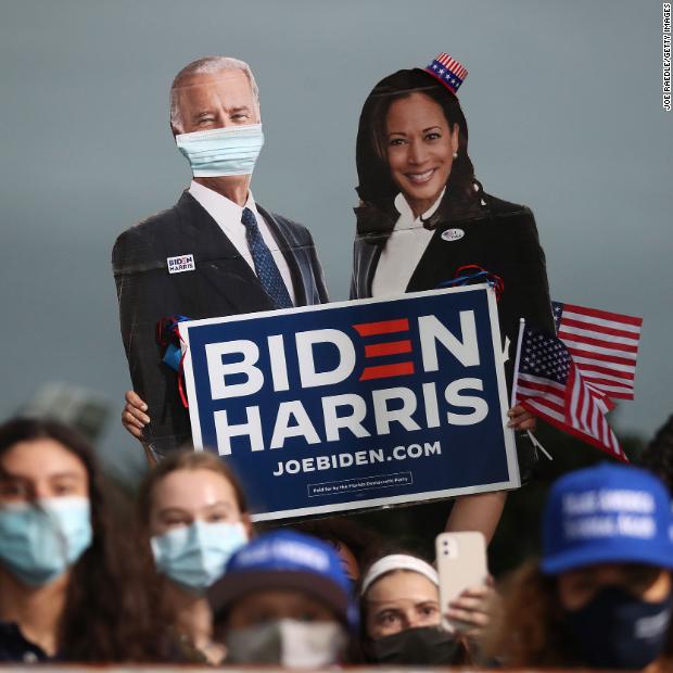 Photos: A tale of two campaignsBiden supporters hold up a cardboard cutout of Biden and his running mate, US Sen. Kamala Harris, during a drive-in rally in Miami on November 2.Hide Caption 9 of 98