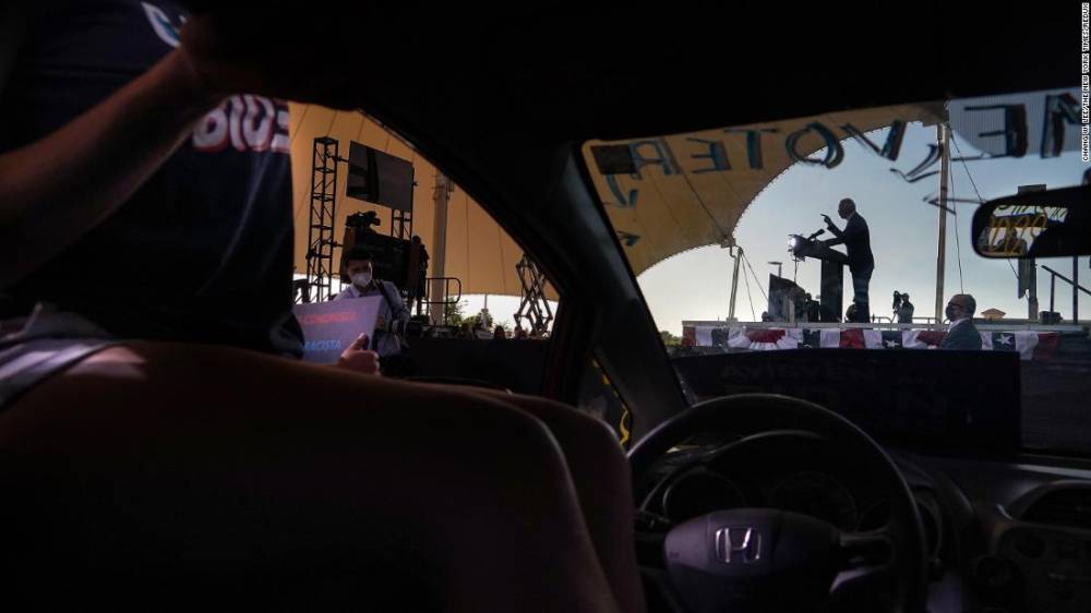 Photos: A tale of two campaignsBiden is seen through the windshield of a car while speaking at a campaign event in Miramar, Florida, on October 13.Hide Caption 53 of 98