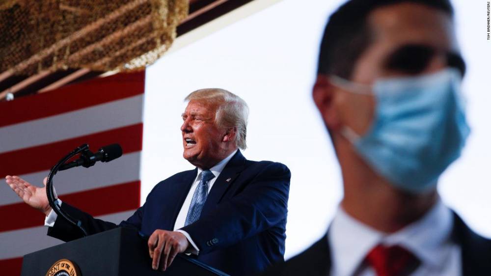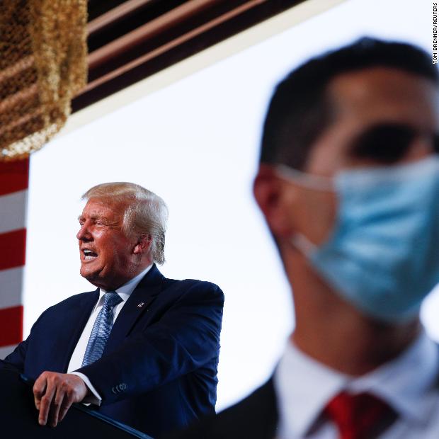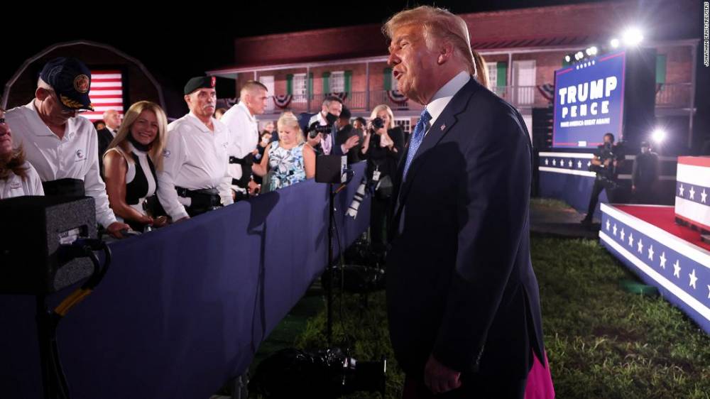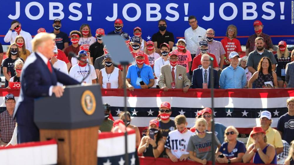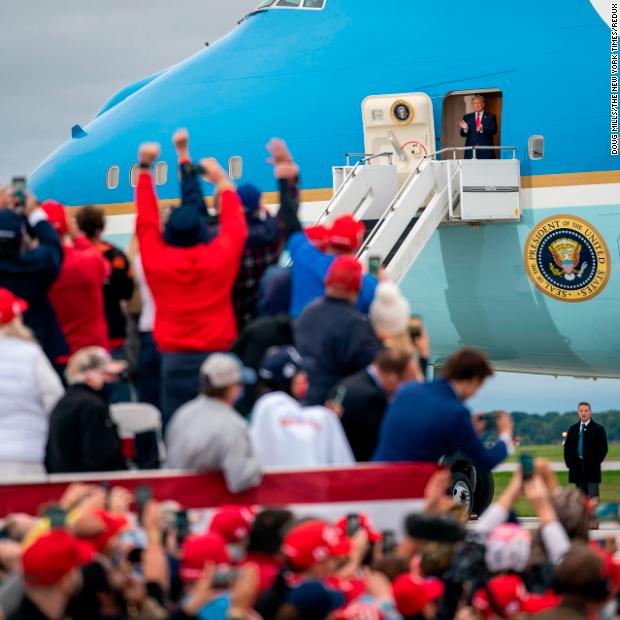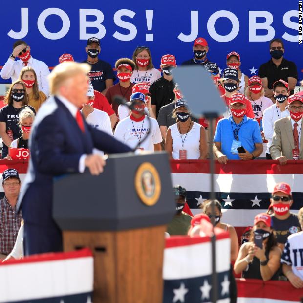 Photos: A tale of two campaignsSupporters react as Trump delivers a speech September 3 at Arnold Palmer Regional Airport in Latrobe, Pennsylvania. Speaking to a largely maskless crowd, Trump at one point mocked Biden: “Did you ever see a man that likes a mask as much as him?”Hide Caption 80 of 98