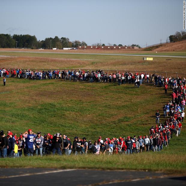 Photos: A tale of two campaignsTrump supporters wait for a rally in Hickory, North Carolina, on November 1.Hide Caption 13 of 98