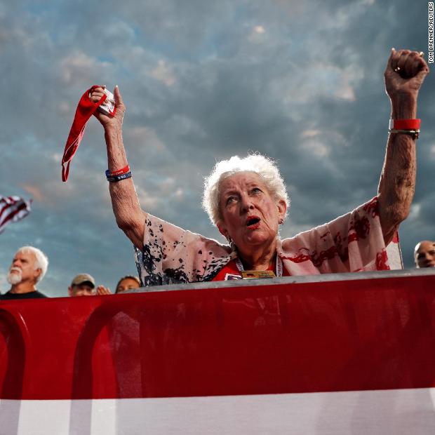 Photos: A tale of two campaignsPeople cheer for Trump at a campaign rally at Cecil Airport in Jacksonville, Florida, on September 24.Hide Caption 63 of 98