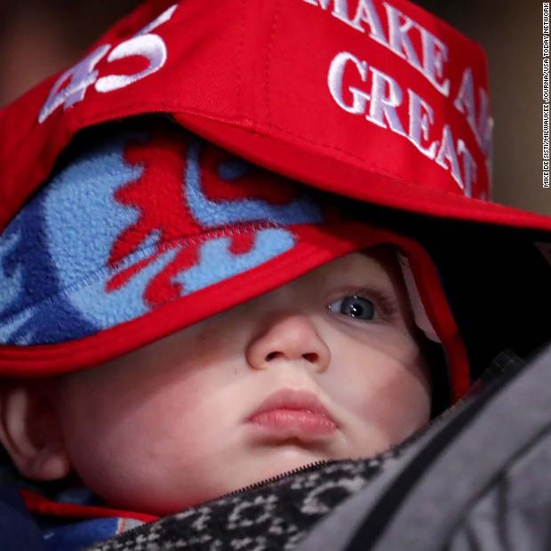 Photos: A tale of two campaignsA bundled-up baby wears a “Make America Great Again” hat at Trump’s rally in Kenosha, Wisconsin, on November 2. Hide Caption 7 of 98