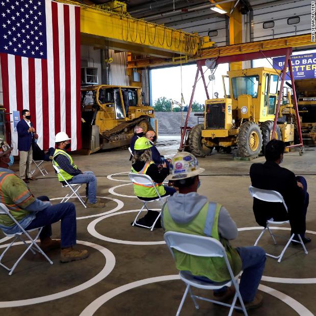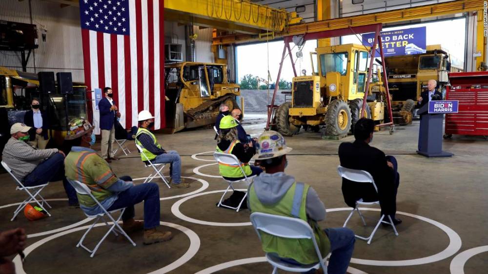 Photos: A tale of two campaignsBiden speaks to union workers after touring an operating engineers training facility in New Alexandria, Pennsylvania, on September 30.Hide Caption 61 of 98