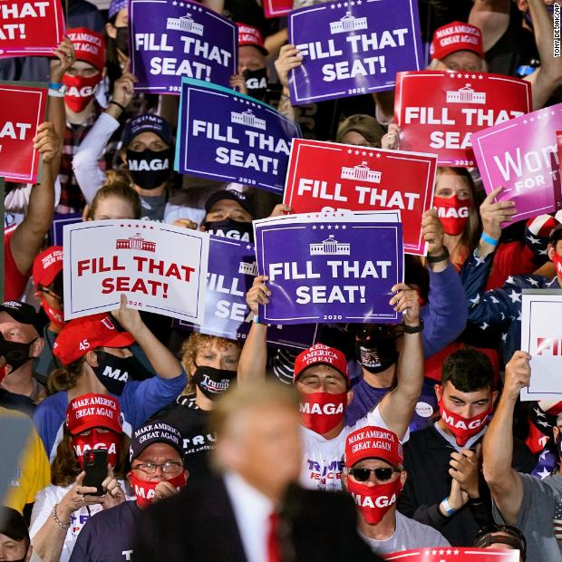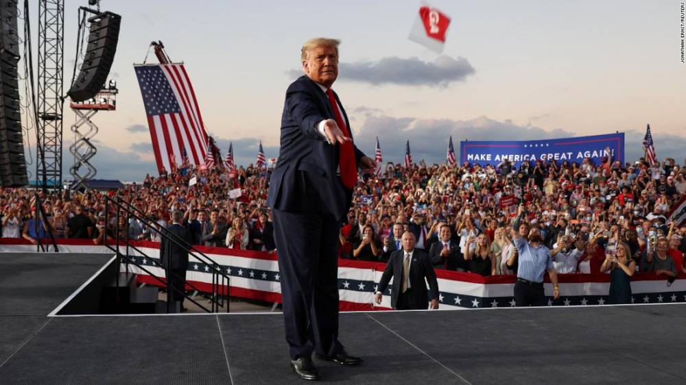 Photos: A tale of two campaignsTrump tosses face masks to the crowd as he takes the stage for a campaign rally in Sanford, Florida, on October 12.Hide Caption 57 of 98