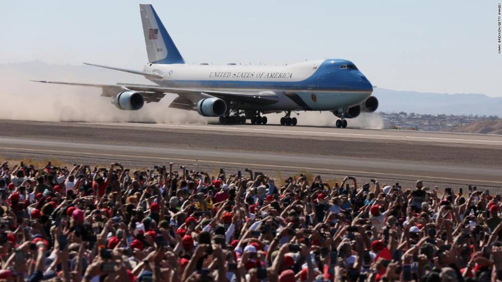Photos: A tale of two campaignsTrump, aboard Air Force One, arrives for a rally in Bullhead City, Arizona, on October 28.Hide Caption 25 of 98