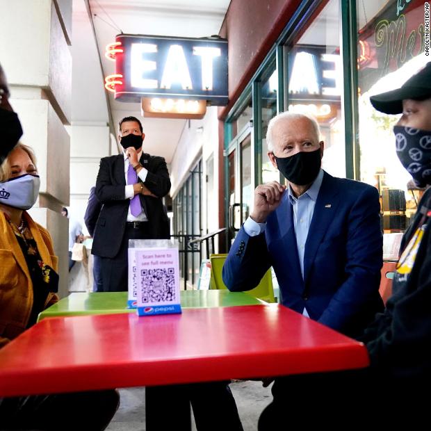Photos: A tale of two campaignsBiden puts on a face mask as he delivers remarks at a voter mobilization event in Cincinnati on October 12.Hide Caption 56 of 98
