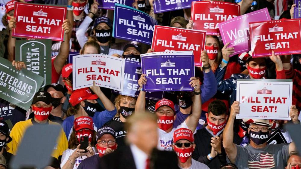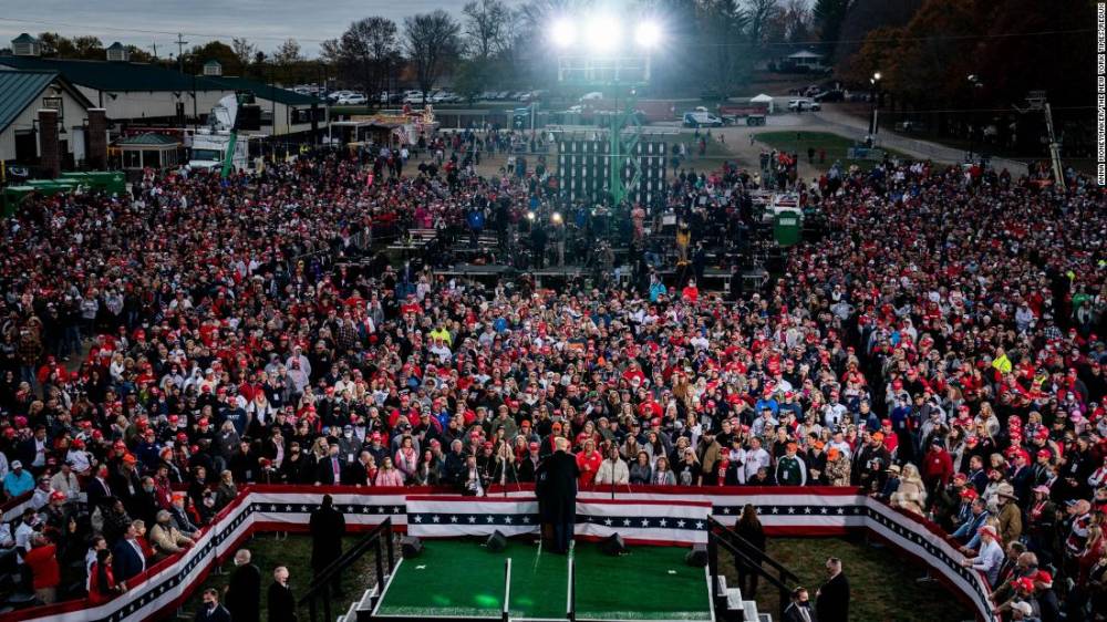 Photos: A tale of two campaignsSupporters of US President Donald Trump listen to him speak during a campaign rally in Circleville, Ohio, on October 24.Hide Caption 36 of 98