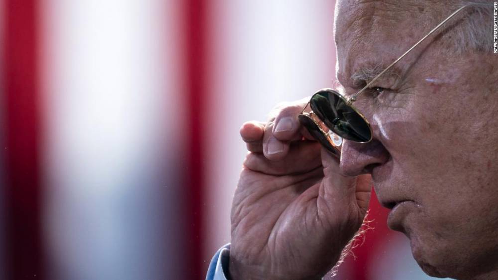 Photos: A tale of two campaignsPeople sitting in social-distancing circles are reflected in Biden’s sunglasses as he speaks in Charlotte, North Carolina, on September 23.Hide Caption 64 of 98