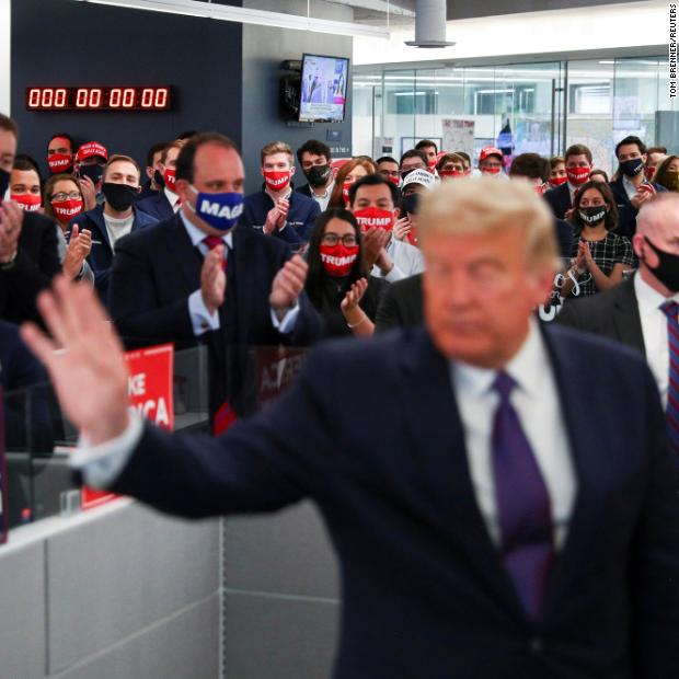 Photos: A tale of two campaignsPresident Donald Trump is applauded by his campaign staff as he visits his campaign headquarters in Arlington, Virginia, on Tuesday, November 3.Hide Caption 1 of 98