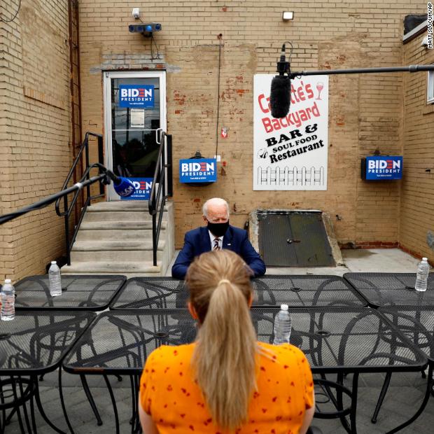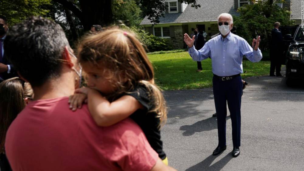 Photos: A tale of two campaignsBiden speaks with supporters from a distance after he met with labor leaders in Lancaster, Pennsylvania, on September 7.Hide Caption 77 of 98