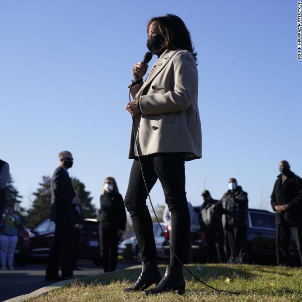 Photos: A tale of two campaignsUS Sen. Kamala Harris, Biden’s running mate, visits a polling location in Detroit on Election Day. During her surprise stop, she thanked voters for waiting in line.Hide Caption 3 of 98