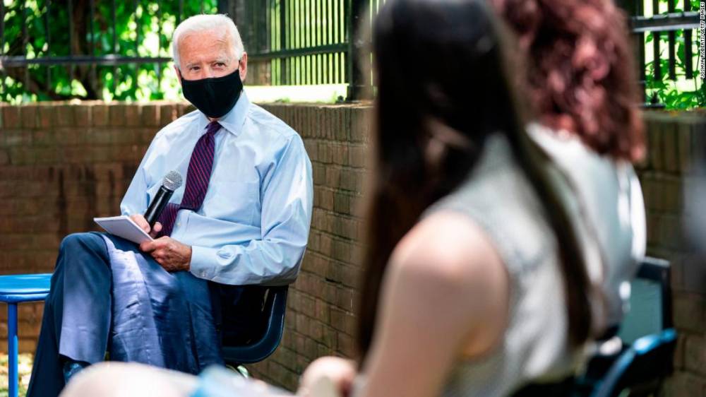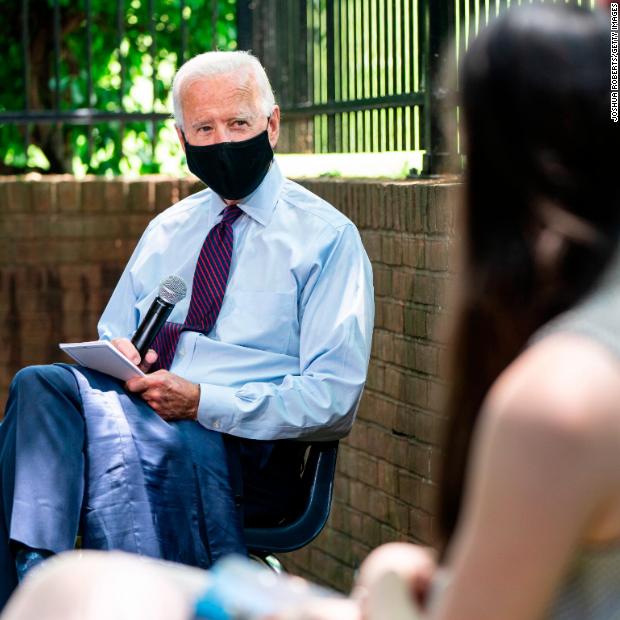 Photos: A tale of two campaignsBiden puts his face mask back on after discussing the US economy at an event in Wilmington, Delaware, on September 4.Hide Caption 79 of 98
