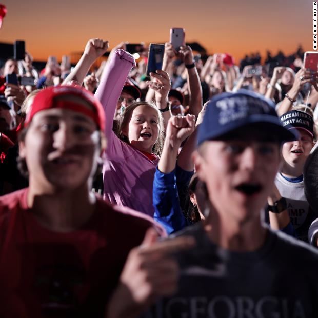 Photos: A tale of two campaignsSupporters cheer as Trump holds a campaign rally in Macon, Georgia, on October 16.Hide Caption 49 of 98