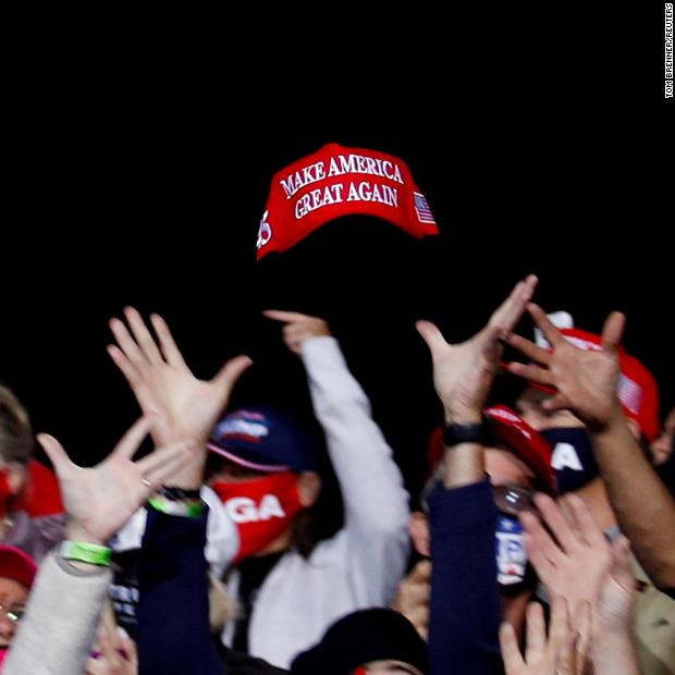 Photos: A tale of two campaignsTrump tosses hats into the crowd at a campaign rally in Allentown, Pennsylvania, on October 26.Hide Caption 32 of 98