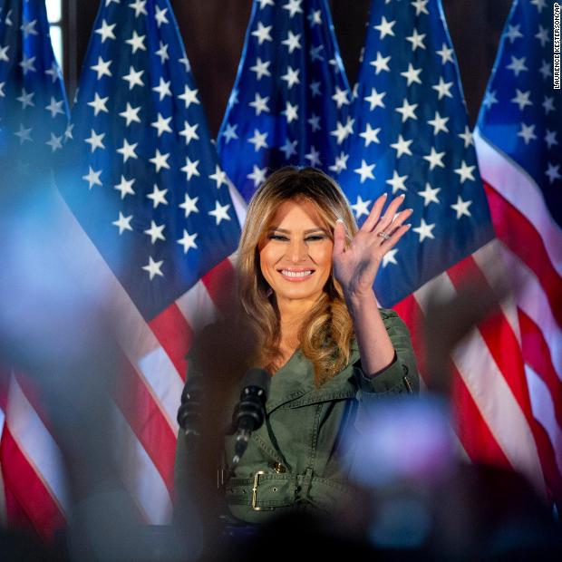 Photos: A tale of two campaignsFirst lady Melania Trump gives a speech at the White House during the Republican National Convention. “I want to acknowledge the fact that since March, our lives have changed drastically. The invisible enemy Covid-19 swept across our beautiful country and impacted all of us,” she said as her husband sat in the front row of an audience that did not appear to be socially distanced.Hide Caption 86 of 98