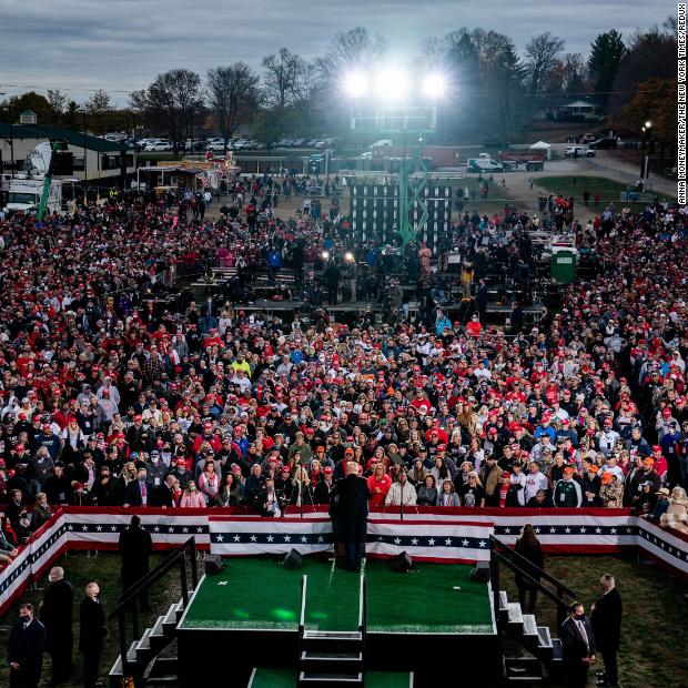 President Donald Trump speaks during his final rally of the 2020 campaignJournalists who covered both the 2016 and 2020 races were struck by the pervasiveness of misinformation this time around. “In 2020,” one fixture at Trump’s rallies said, “supporters of the president told me confidently that JFK Jr. was joining Trump’s ticket, that Joe Biden was ‘getting a shot in the ass’ ahead of each debate, that Kamala Harris ‘MeToo’d’ Joe Biden in the primary, and that wind turbines were killing the nation’s bird population at unprecedented rates. None of this was true.””Whether Trump wins or loses,” this reporter added, “there’s still a lot of work to be done to remedy the mistrust he’s sown in media.”