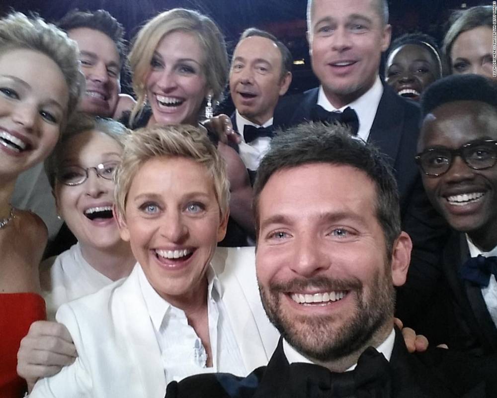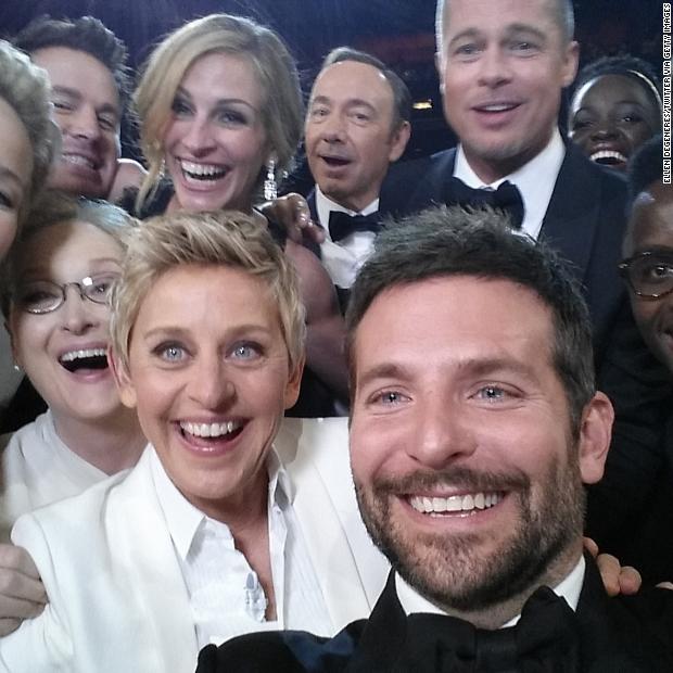Photos: The life and career of Ellen DeGeneresDeGeneres takes a moment to orchestrate a selfie with a group of movie stars at the 2014 Oscars. Actor Bradley Cooper, seen in the foreground, was holding the phone at the time. “If only Bradley’s arm was longer,” DeGeneres tweeted. “Best photo ever.” It became the most retweeted post of all time.Hide Caption 24 of 34