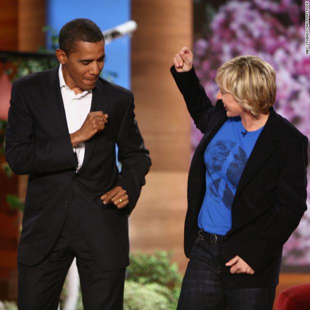 Photos: The life and career of Ellen DeGeneresDeGeneres dances with presidential candidate Barack Obama during an episode of her talk show in 2007. Obama was elected president in 2008.Hide Caption 18 of 34