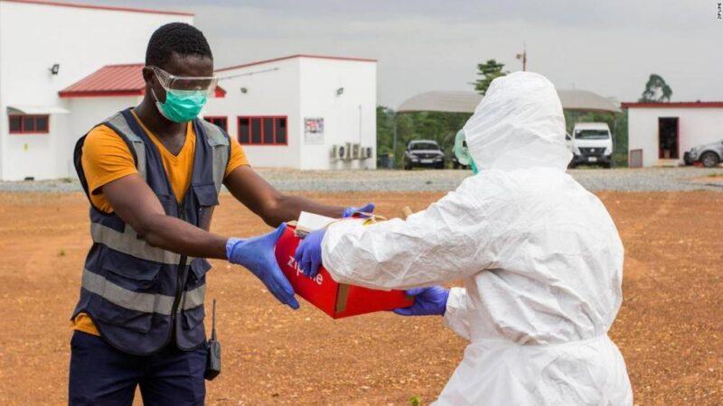Zipline has two distribution centers in Rwanda and four in Ghana, built to speed up the transport of medical supplies in areas with poor roads and a lack of refrigerated vehicles. Read MoreDoctors order products from their phones and drones make the deliveries within a 50-mile range, in an average of 30 minutes, according to Zipline. The drones can carry packages weighing almost 4 pounds (1.8 kilos) and drop them to a designated area on the ground using a simple paper parachute.Zipline says that it has already delivered over 60,000 units of blood, critical medicines and vaccines for measles, polio and other diseases. Now the company is working with the governments of Rwanda and Ghana to support their coronavirus response efforts, explains Zipline co-founder and CEO Keller Rinaudo.In Ghana, Zipline’s distribution centers hold stocks of emergency personal protective equipment (PPE), allowing health authorities to target their distribution. It has also started delivering Covid-19 test samples from hospitals in rural Ghana to laboratories in the cities of Accra and Kumasi.