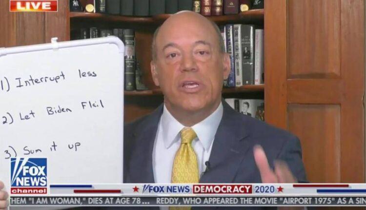 It was a rare scene in which some of the President’s most ardent supporters in conservative media critiqued him, an indication of how poorly Trump fared in the showdown with Biden.”I don’t know if he didn’t hear it, but he’s got to clarify that right away,” Kilmeade added. “That’s like, ‘Are you against evil?'”Kilmeade was not the only one attempting to speak through the television screen to Trump, who is known to regularly watch the program.Read MoreStephen Moore, the conservative media personality who has advised Trump on economic issues, recommended to Trump that he show more respect to the forum in future debates.”The president interrupted way too much,” Moore said. “Mr. President, please don’t do that in the next debate.”In one of the more visually striking moments, Ari Fleischer, the former White House press secretary for President George W. Bush, held up a white board with three pieces of advice outlined for Trump: “1.) Interrupt less 2.) Let Biden flail 3.) Sum it up.”