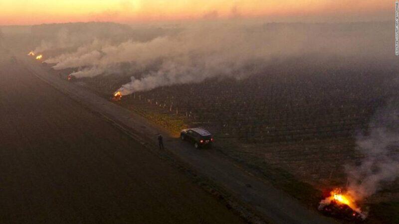 At dawn on April 7, smoke rises from fires lit in the Loire Valley’s Vouvray vineyard to protect them from frost. “To you, the farmers, who all over France have fought tirelessly, night after night, to protect the fruits of your labor, I want to say that we give you our full support in this fight. Stand firm! We are at your side and will remain so,” French President Emmanuel Macron said on Twitter.The crisis comes at a particularly difficult time for French winemakers, who are suffering weaker sales as a result of coronavirus lockdowns in key international markets, the collapse of tourism due to the pandemic and US tariffs related to a dispute with the European Union over subsidies to planemakers Airbus (EADSY) and Boeing (BA). Exports of French wine and spirits fell nearly 14% to €12.1 billion ($14.5 billion) in 2020, with sales to the United States tumbling 18%, according to the Federation of Wine and Spirits Exporters of France.