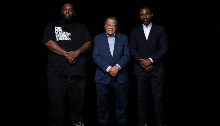 From left, Greenwood bank founders Michael “Killer Mike” Render, former Atlanta Mayor Andrew Young and Bounce TV founder Ryan Glover