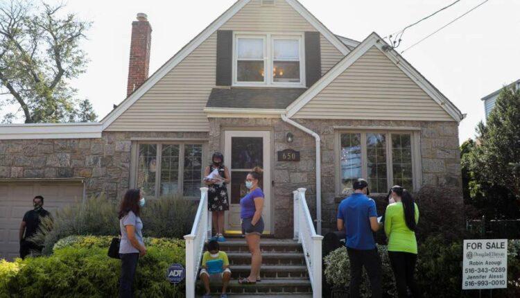 People wait to visit a house for sale in Floral Park, New York, on Sept. 6, 2020.