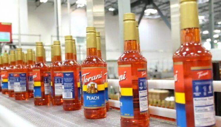 Bottles of Torani Peach syrup move down the production line at the company’s new manufacturing facility in San Leandro, California.Torani was slated to start its move in March to a spacious, 327,000-square-foot San Leandro building that would house its offices and state-of-the-art production lines. It also would serve as a Willy Wonka-esque, tourist-friendly “Flavor Factory” with a coffee-making “receptionista,” a “customer play area” to try some of the 150-plus flavors, and a speakeasy that could be accessed via a secret passageway behind a bookshelf.