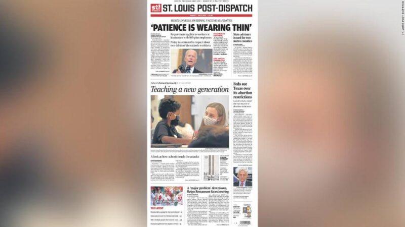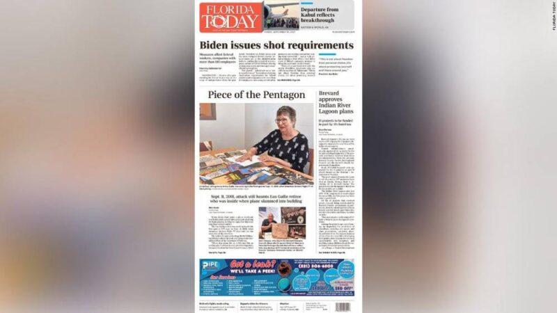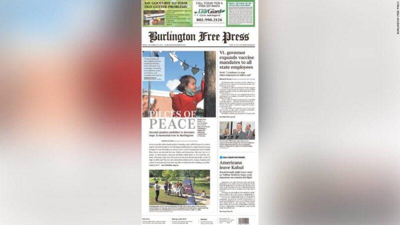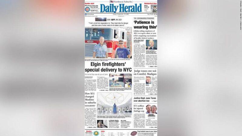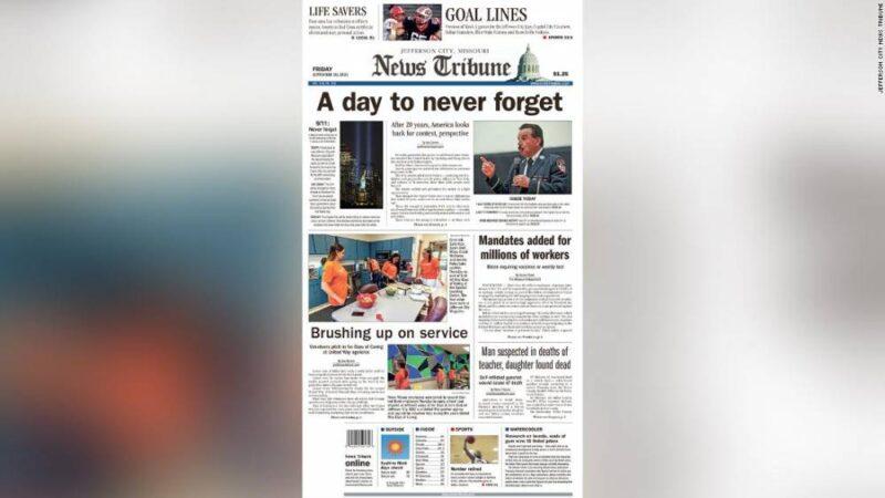 The terror attacks of September 11, 2001 were centered around the East Coast, but its effect was felt in nearly all corners of the country. Ahead of Saturday’s anniversary, newspaper editors around the US are publishing powerful front pages with unique stories that capture how local communities are still grappling with the tragedy 20 years later. Tim Cotter, executive editor of The Day in New London, Connecticut, said that his staff reached out to people in the area ahead of the anniversary so they could feature their personal stories. The Day’s front page on Friday included a story compiling many of those memories from the day of the attacks as well as a profile of a New London resident who had served as a volunteer construction worker at ground zero to clean up the aftermath. “We wanted to hear from people,” Cotter told CNN Business. “It’s a moment that people will always remember where they were, what they were doing.” The Day plans to publish a story on Sunday about how the Muslim community in the area has been affected, Cotter said. The Daily Herald, a newspaper covering suburban Chicago, featured a story about that same topic on its Friday front page. Read MoreJohn Lampinen, senior vice president of Paddock Publications and editor of the Daily Herald, told CNN Business that his paper has been running a week-long series about the anniversary. “[W]e wanted to teach or remind our audience what that day was like, how real and human it felt, how all of us as people responded — to teach or remind our audience that there was a time when the country came together; a time when the divisions disappeared,” Lampinen wrote in an email. “And we wanted to teach or remind our audience that as universal as all this felt, there were some who felt left out — those in the Muslim community, in particular, even though they shared in the incredible heartache.”Here are the front papers of The Day, The Daily Herald and other newspapers in the US from September 10, 2021: